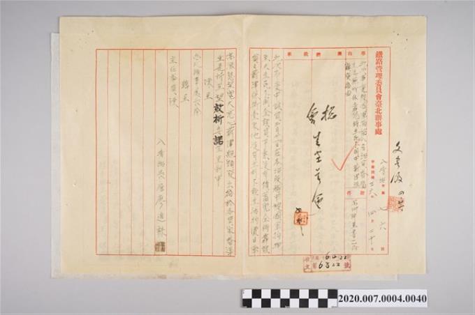 1947年5月3日臺灣省行政長官公署交通處鐵路管理委員會指令