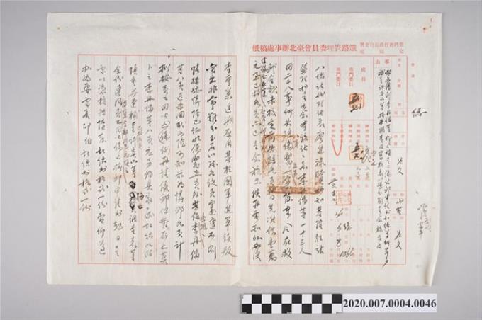 1947年4月20日呈鐵路管理委員會主任委員「此次事變被國軍拘捕8名站員眷屬生活無所依靠…」公文與聯呈書