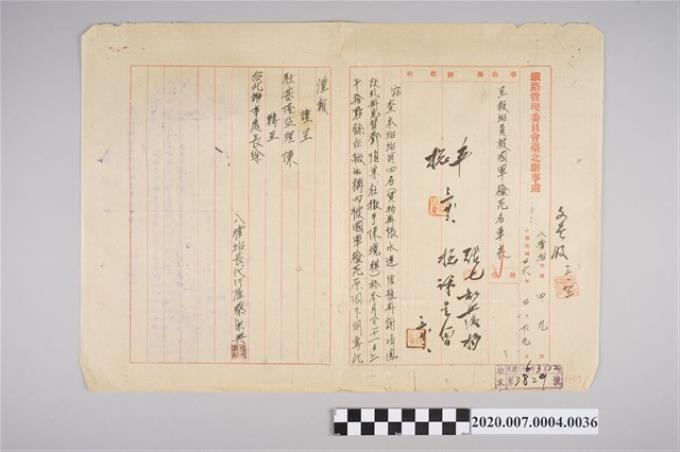 1947年3月28日「為基隆車掌區助役察榮發己由基隆要塞司令部保釋返區由」簽呈正副本