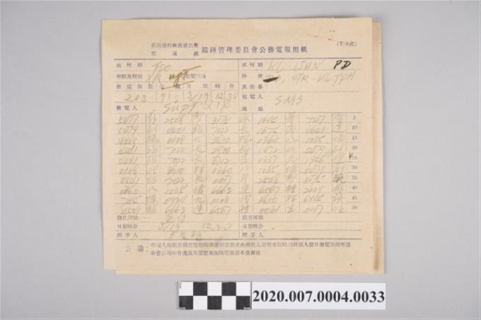 1947年3月19日鐵路管理委員會公務電報用紙2張