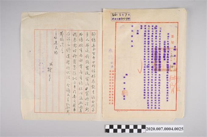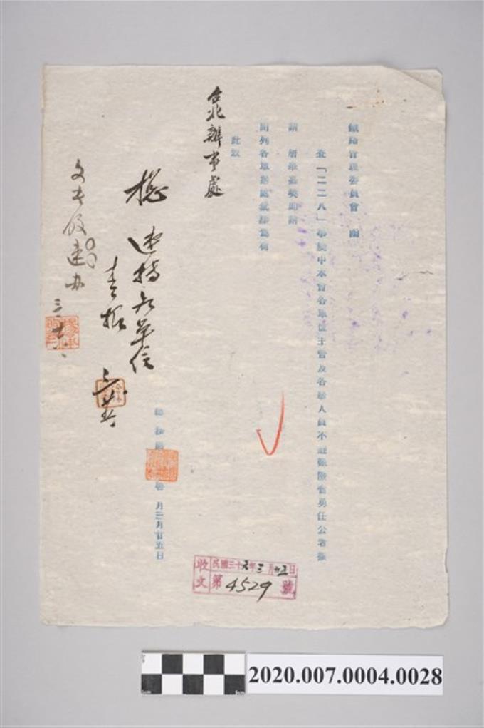 1947年3月26日「令尅日查報薦228事變中奮勇任公之各級人員姓名由」公文正副本