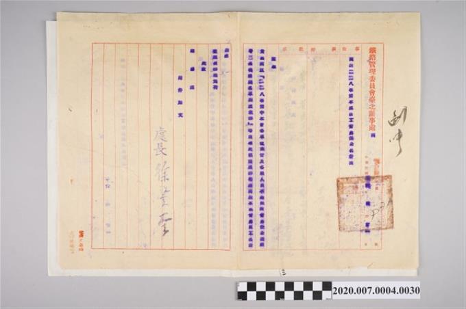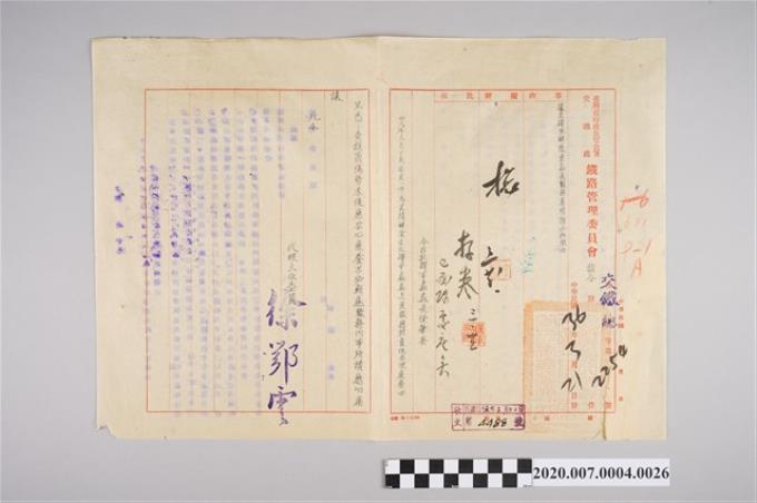 1947年3月25日鐵路管理委員會函臺北辦事處