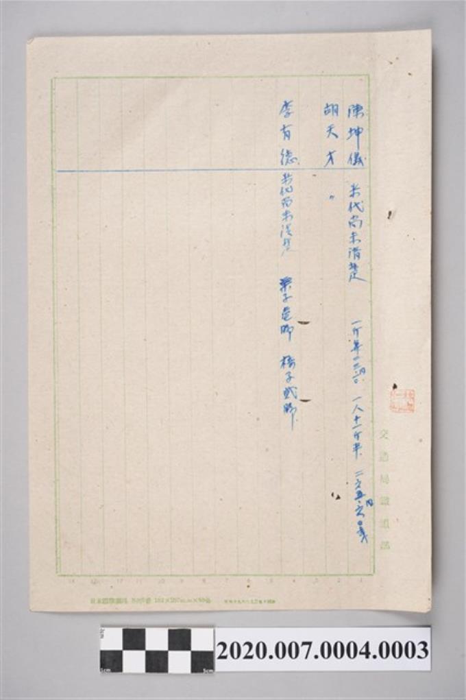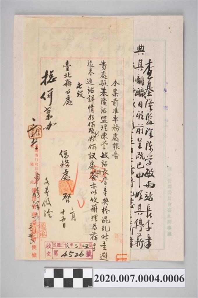 1947年3月22日臺灣省行政長官公署交通處鐵路管理委員會指令