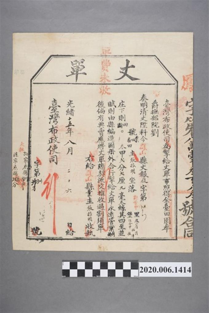 丈單臺灣布政使司郭文茂
