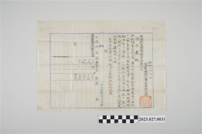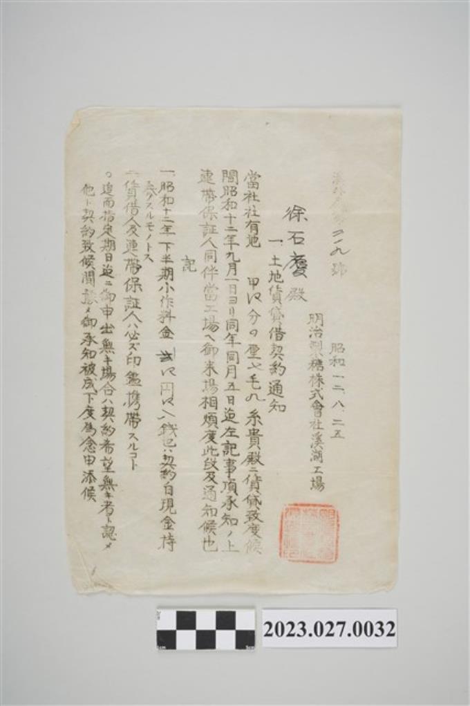 1937年8月25日徐石慶明治製糖株式會社溪湖工廠土地賃貸借契約通知書