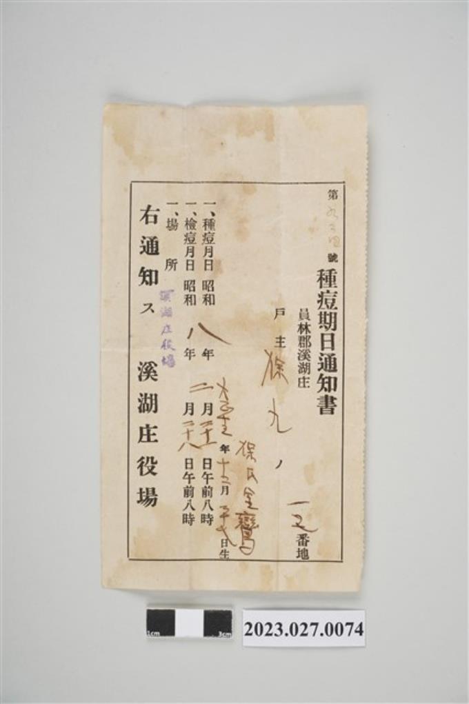 1933年2月21日徐九種痘期日通知書