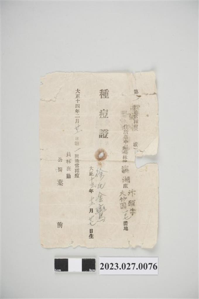 1925年2月21日徐氏金鸞種痘證