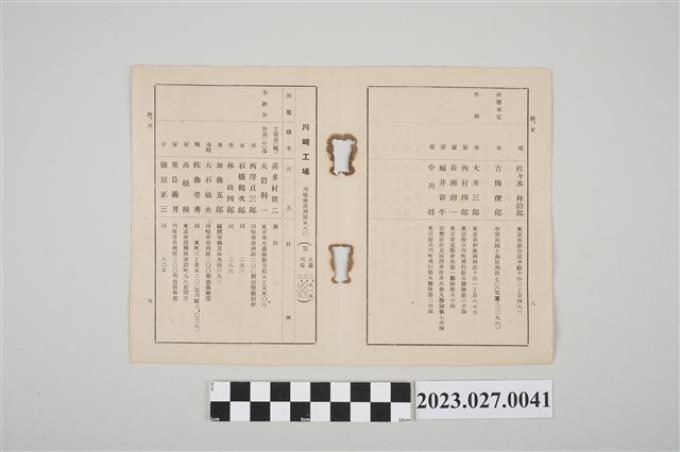 川崎製糖工廠人員名冊