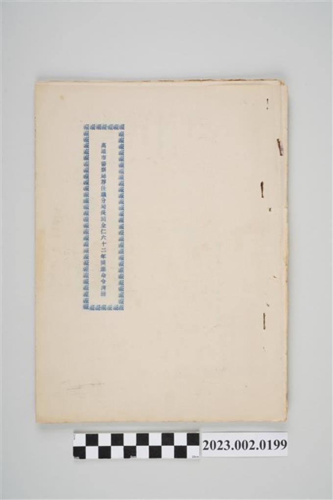 高雄市警察局荐任職分局長劉全仁六十二年獎懲命令清冊