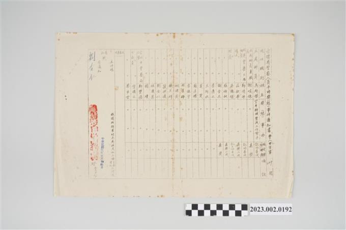 民國65年4月10日劉全仁中國國民黨臺灣省警察黨部獎懲發布書