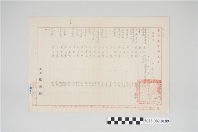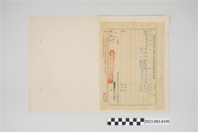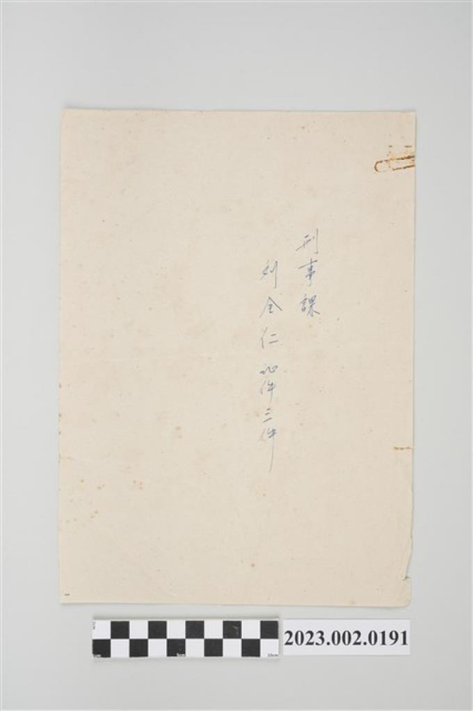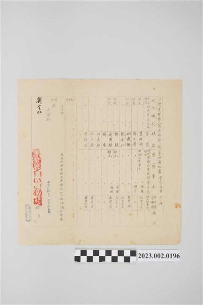 民國48年8月22日劉全仁臺灣省警察人員平時獎(懲)事件通知書