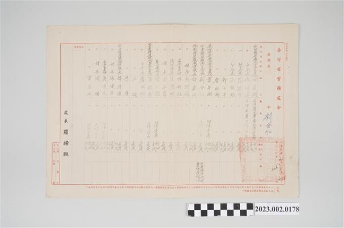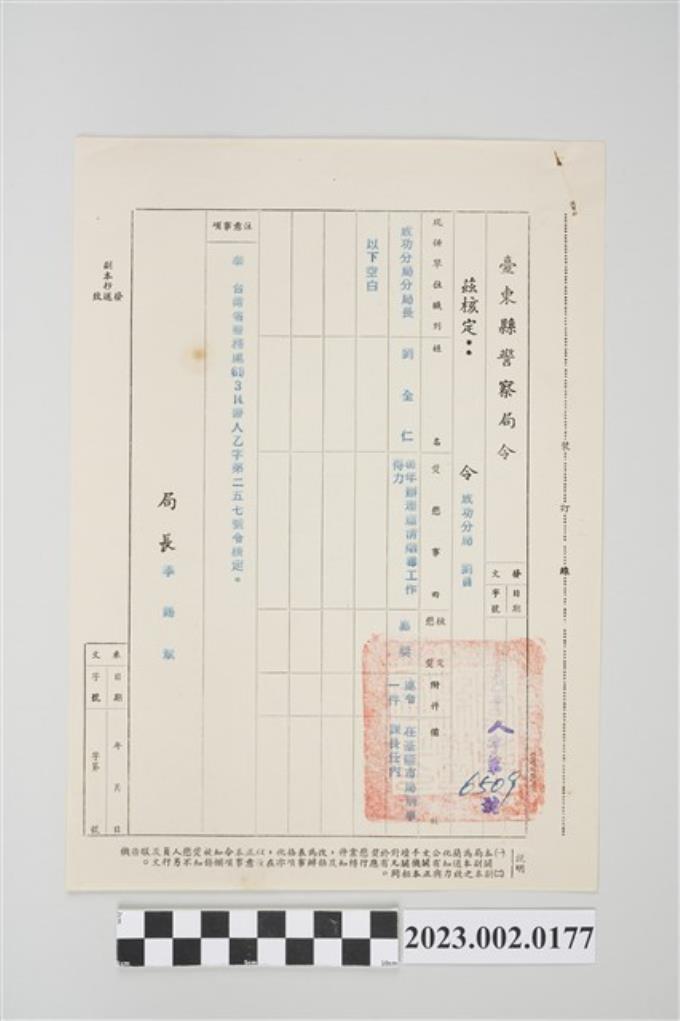 民國62年4月3日劉全仁台東縣警察局考績通知書