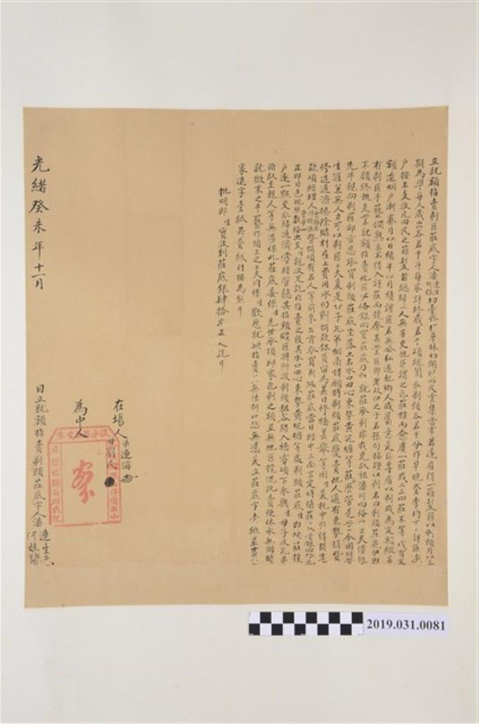 剃頭庄字書「光緒癸未年11月潘連生潘阿妹立就額指賣剃匠莊底字」