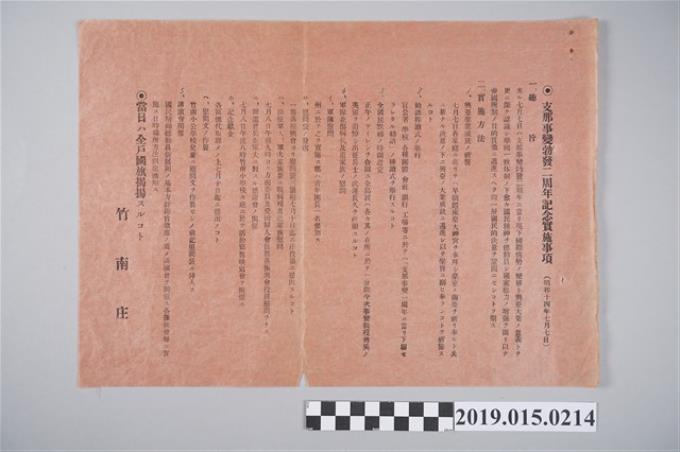 竹南庄支那事變勃發二周年記念行事實施事項廣告單