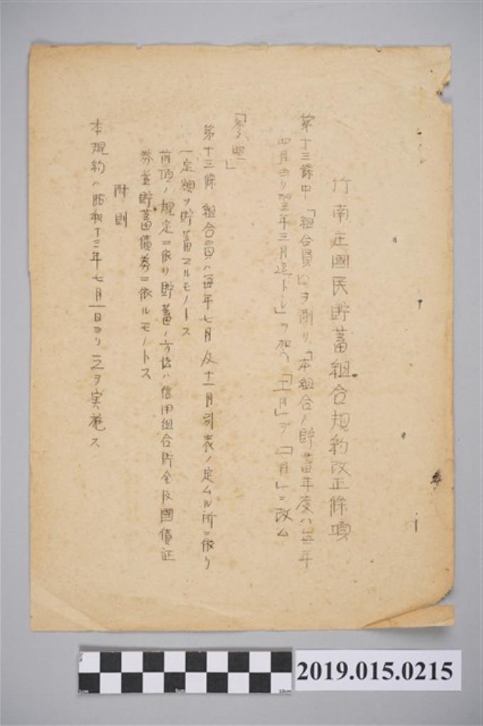 竹南庄國民貯蓄組合規約改正條項