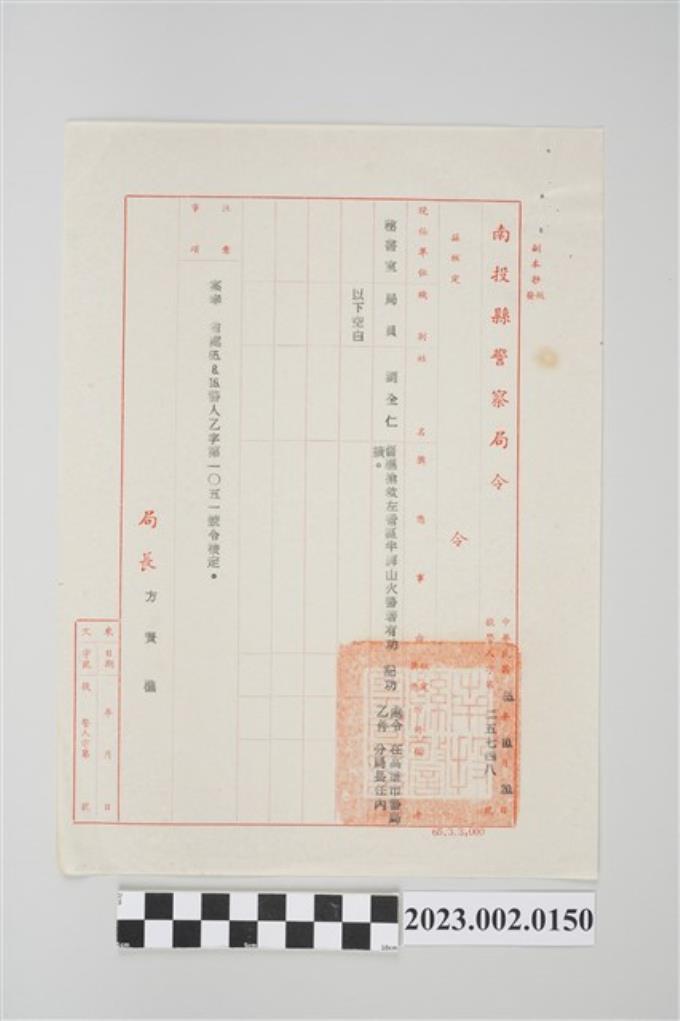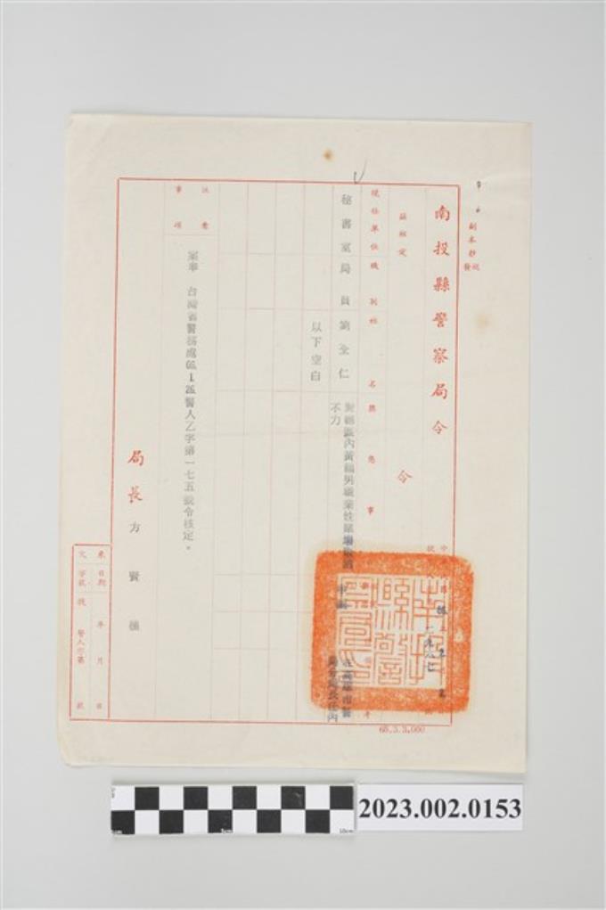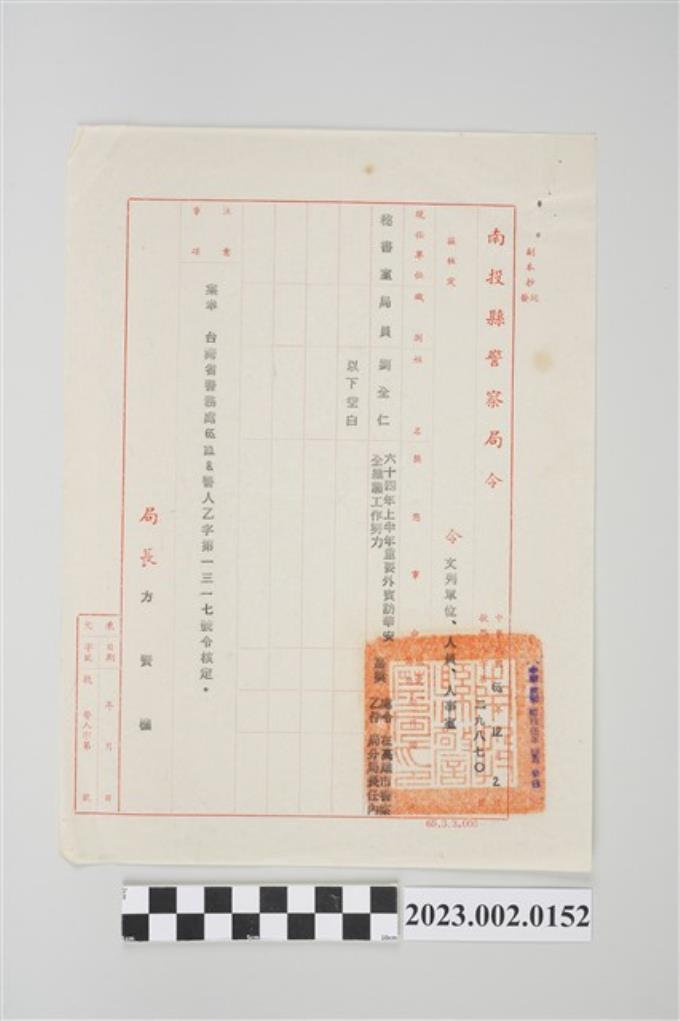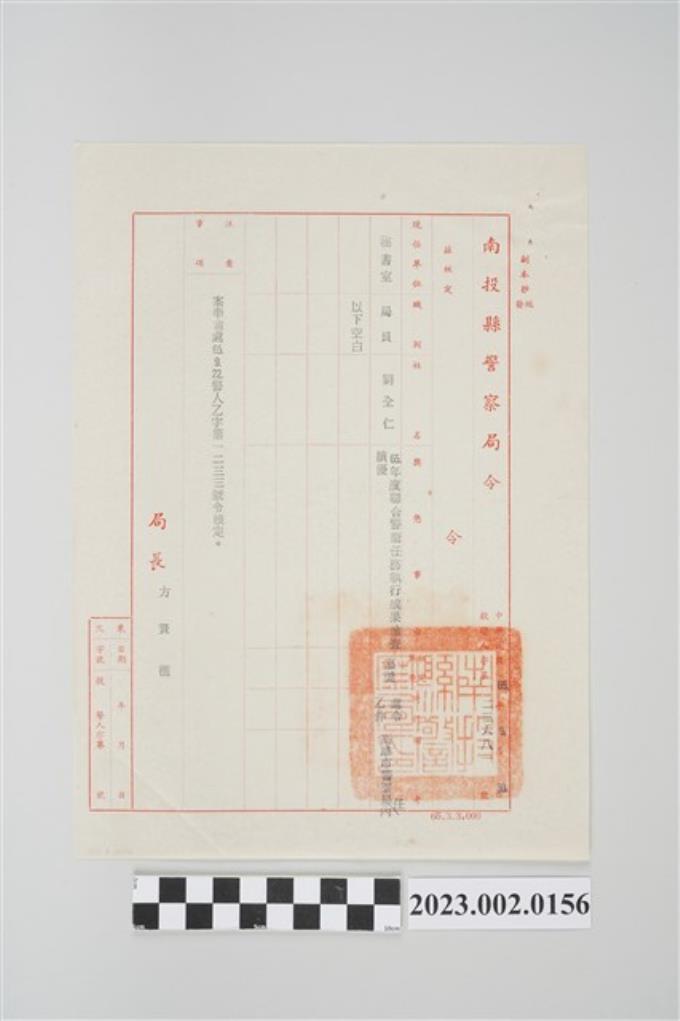 民國66年2月2日劉全仁南投縣警察局令