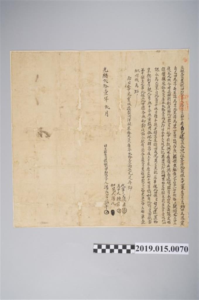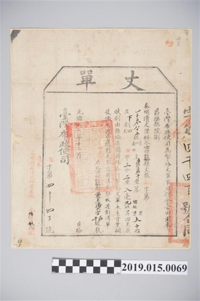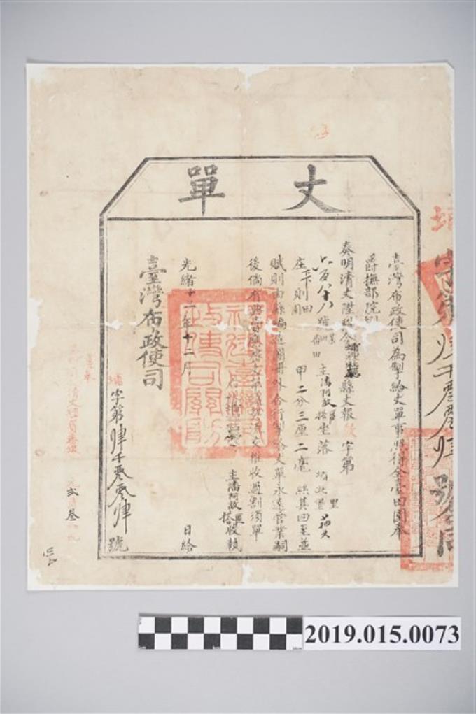 光緒12年12月業戶潘阿敦區塔業戶過戶印單執照
