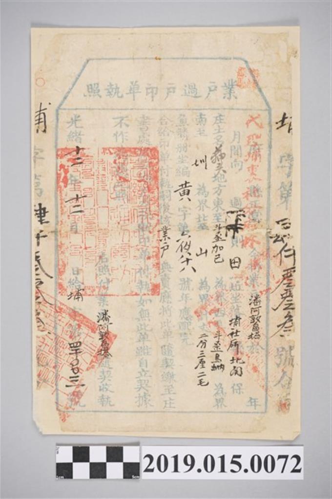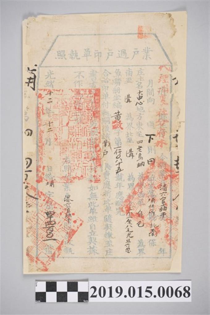 光緒12年12月業戶潘六官菗干業戶過戶印單執照