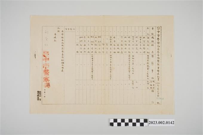 民國51年10月1日台中市警察局員警平時獎懲事件通知書