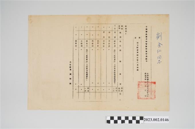 民國62年9月15日劉全仁中國民黨臺灣省警察黨部委員會(派令)