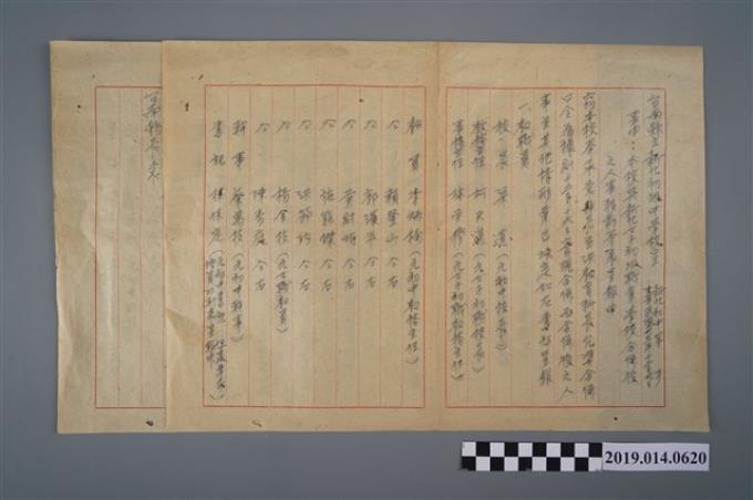 梁道臺南縣立新化初級中學校呈(本校與新化女子初級職業學校合併後之人士移動)