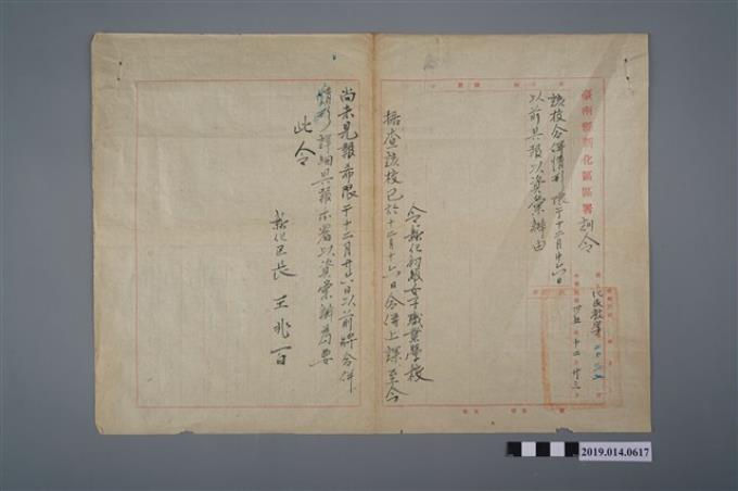王兆百予柯天送之臺南縣新化區區署訓令