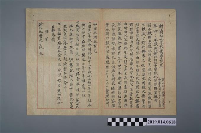 新化女子初級職業學校存置陳情書