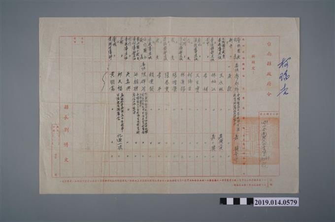 臺南縣政府民國57年予柯瑞吉獎懲令