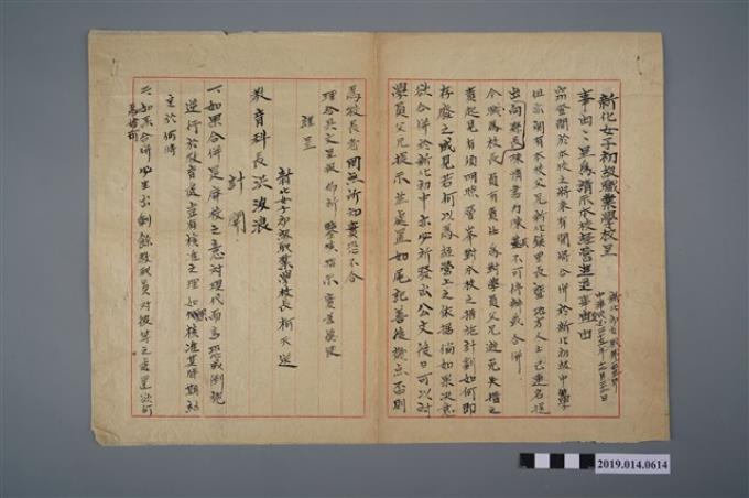 臺南縣政府教育科復文表(新化女子初級職業學校與新化初中合併案)