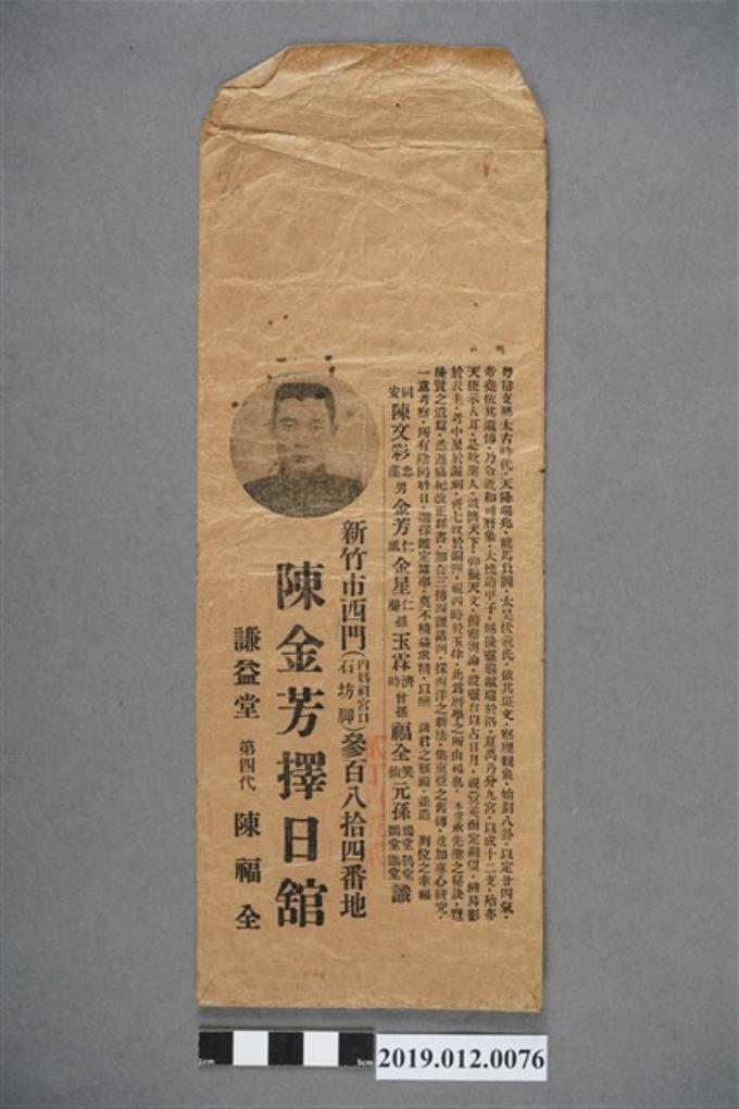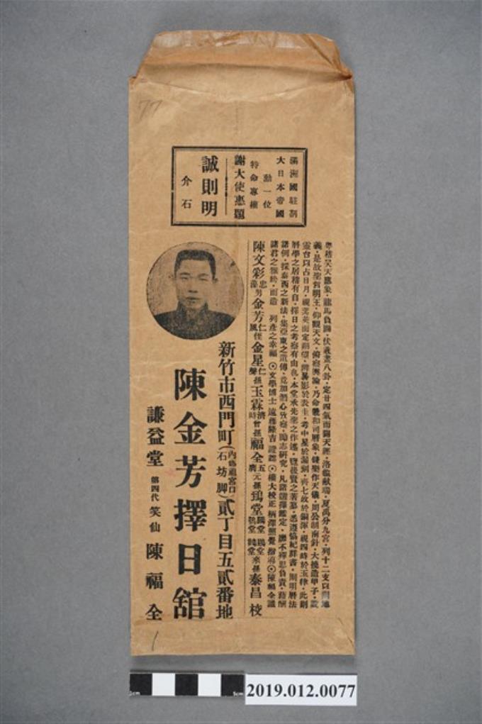 陳金芳擇日館封套(上有題字廣告)