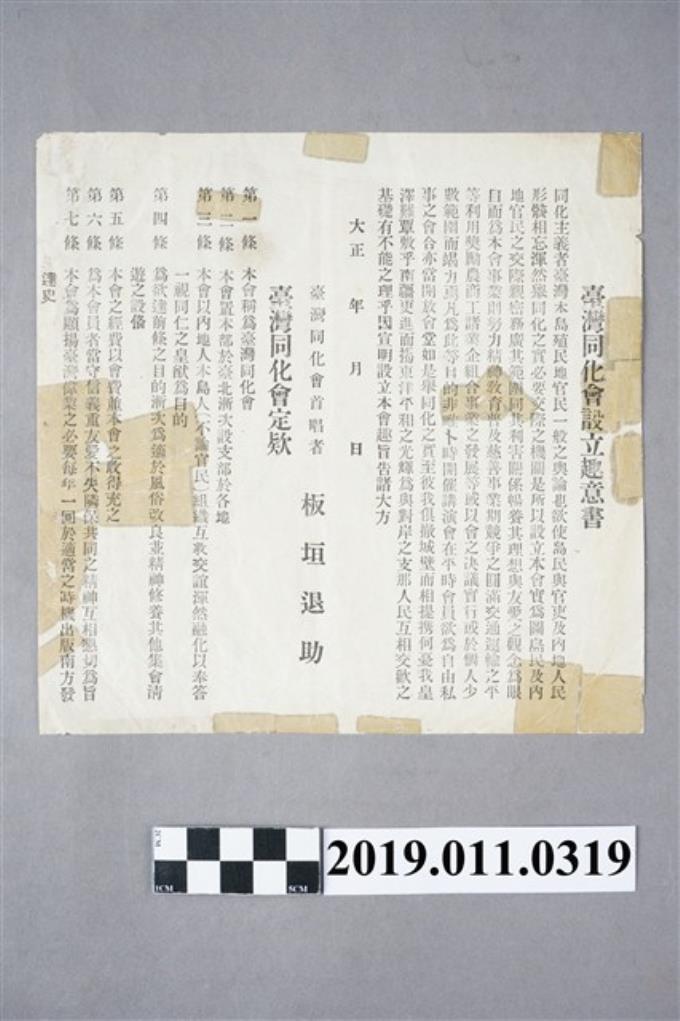大正3年台灣同化會設立趣意書