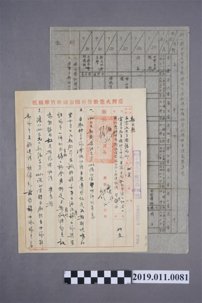 臺灣火柴股份有限公司新竹廠稿紙