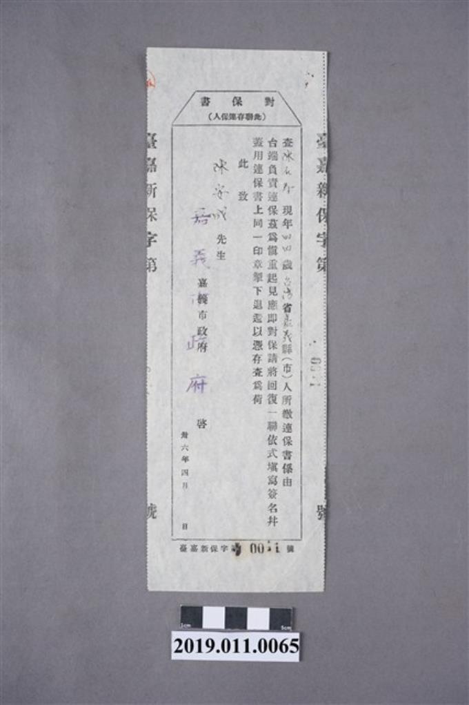 1947年陳安成連保書