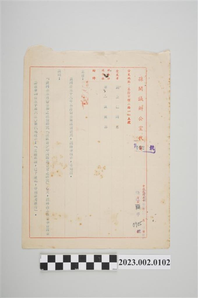 民國59年7月31日孫開誠辦公室寄送給劉全仁代電公文