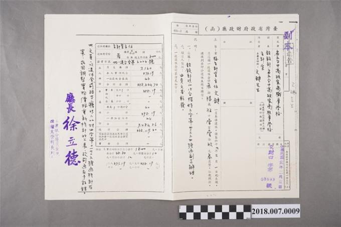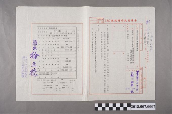 臺灣省政府財政廳函給文鍵第077719號