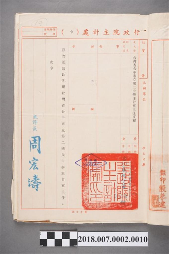 文鍵任臺中高級家事商業職校主計室主任臺灣省政府主計處函令