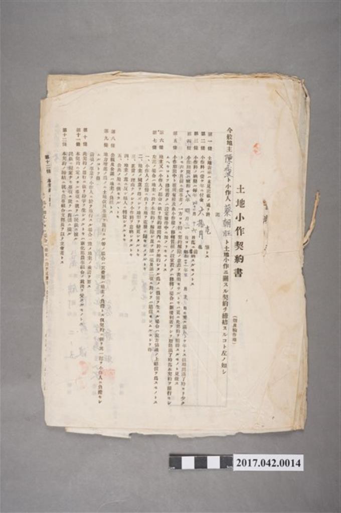 昭和17-18年陳崧波與蔡朝旺等人立土地小作契約書一批