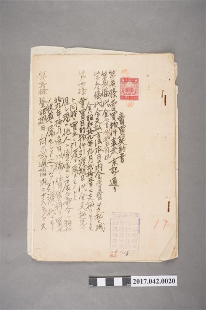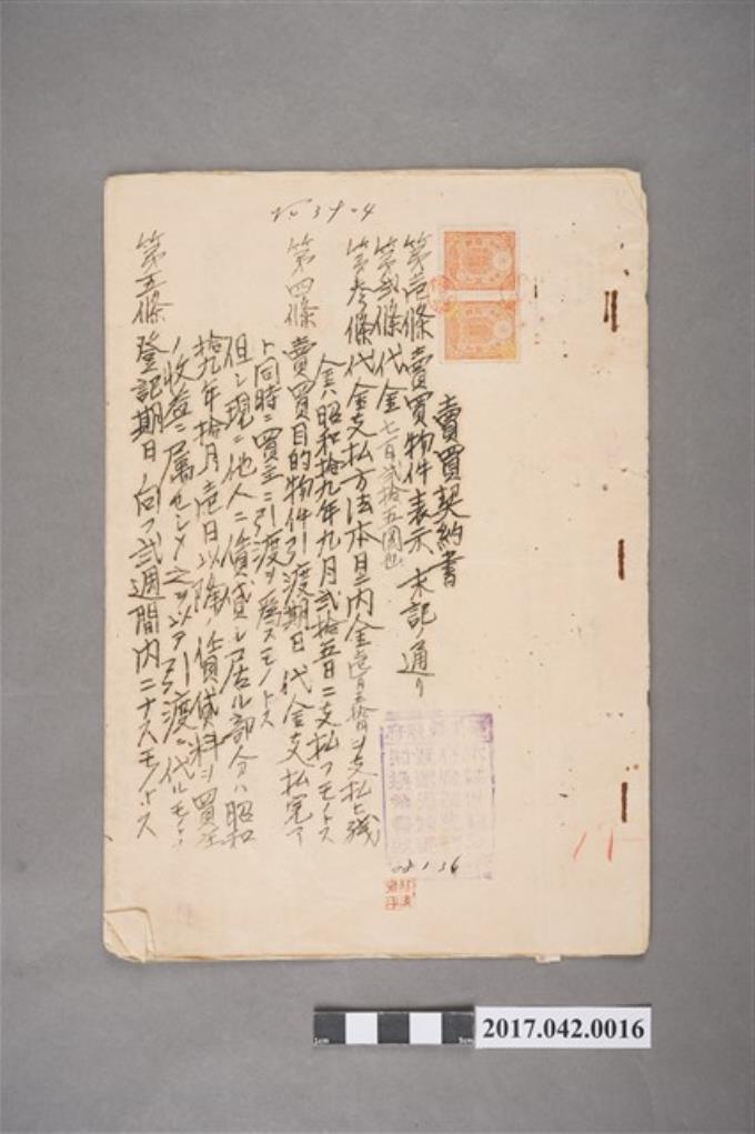 昭和19年9月24日陳怨與楊甘澍等立賣買契約書2份