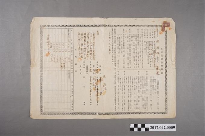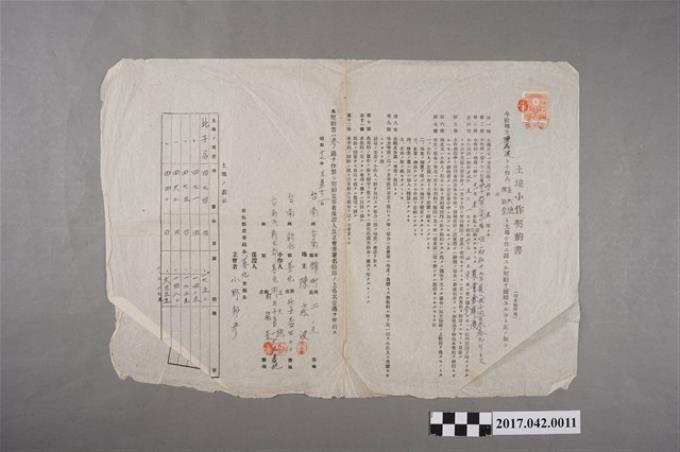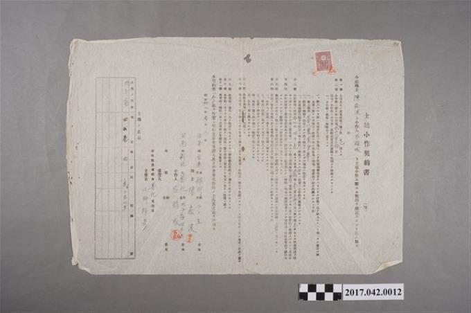 昭和17年3月8日陳崧波與呂福成立土地小作契約書