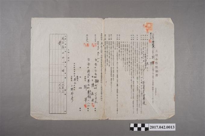 昭和17年5月1日陳崧波與劉澤立土地小作契約書