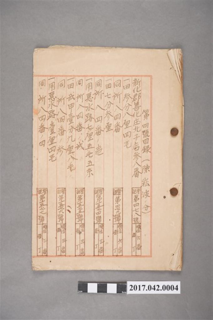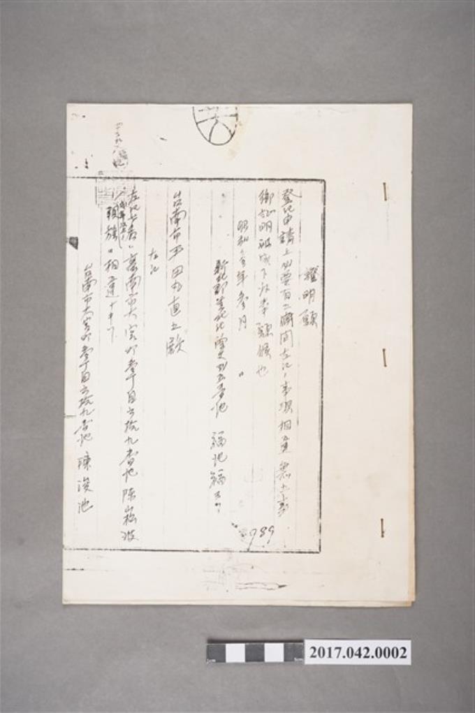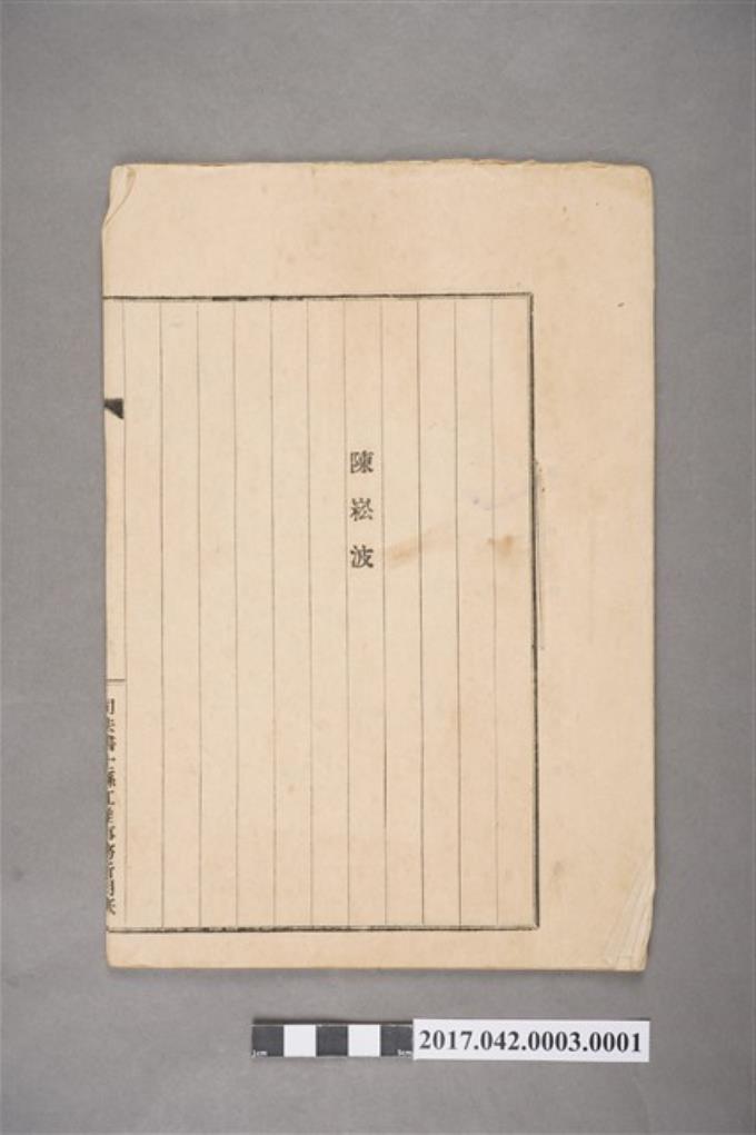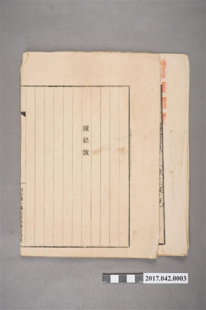 臺南市尹田丸直之發予陳崧波親族世系證明影本