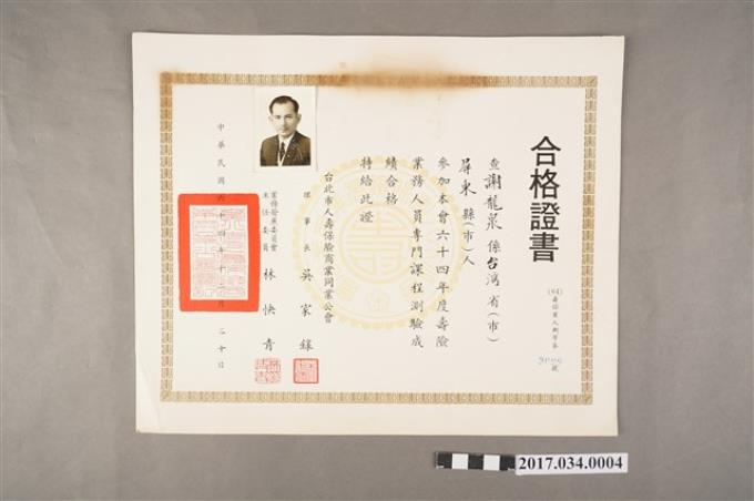 臺南縣政府發予陳重光祭祀公業陳三合派下員證明書影本