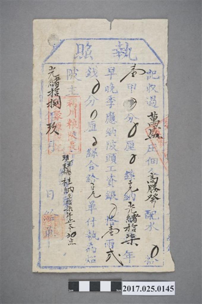 光緒17年(1891年)萬盛庄佃人高勝發執照