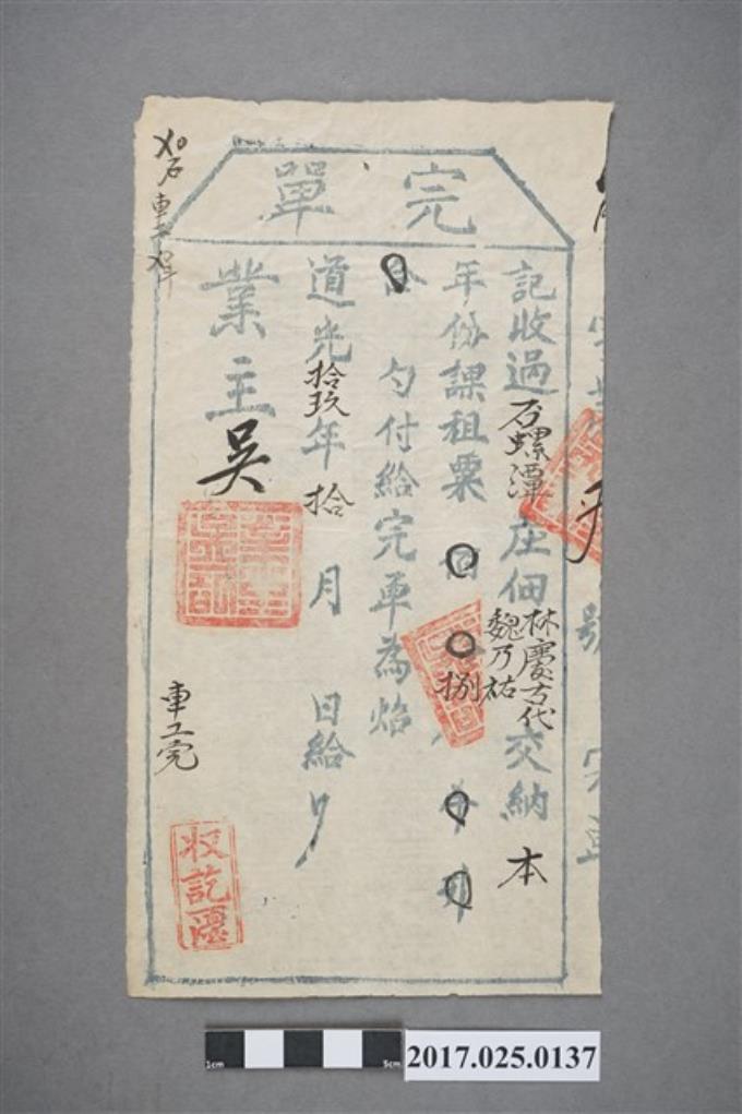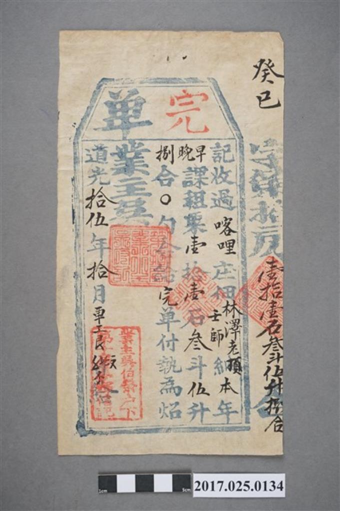 同治9年(1870年)內門庄佃戶李尾、劉光趙完單執照