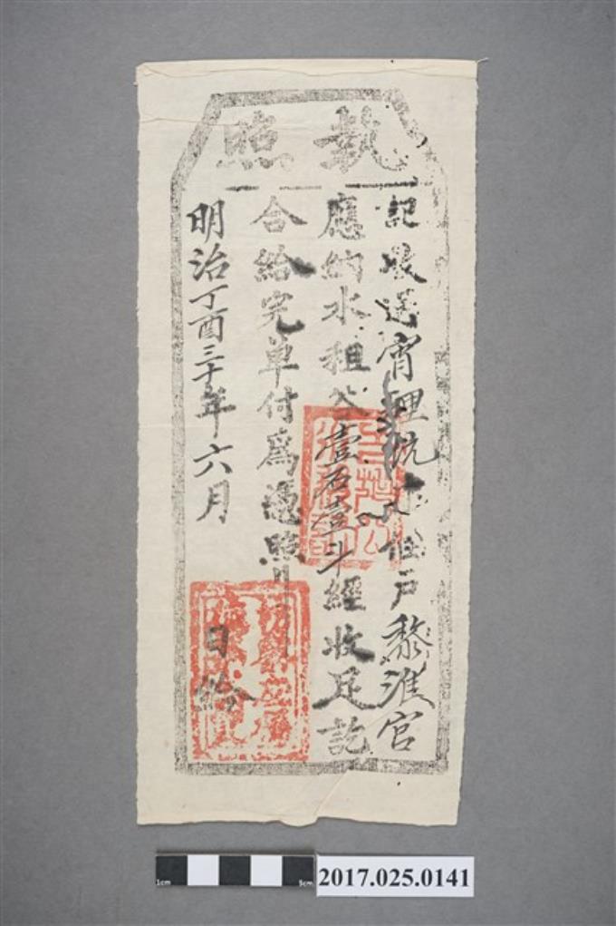 明治30年(1897年)霄裡沆庄佃戶黎準官執照