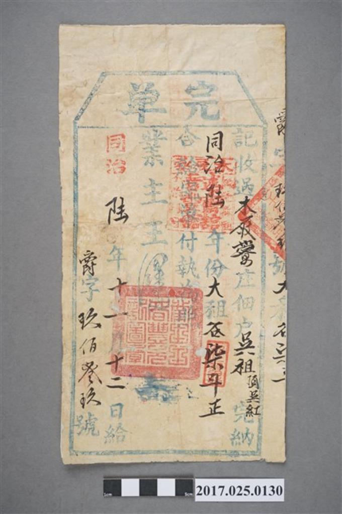 光緒19年(1893年)南勢庄佃戶廖洪雲完單