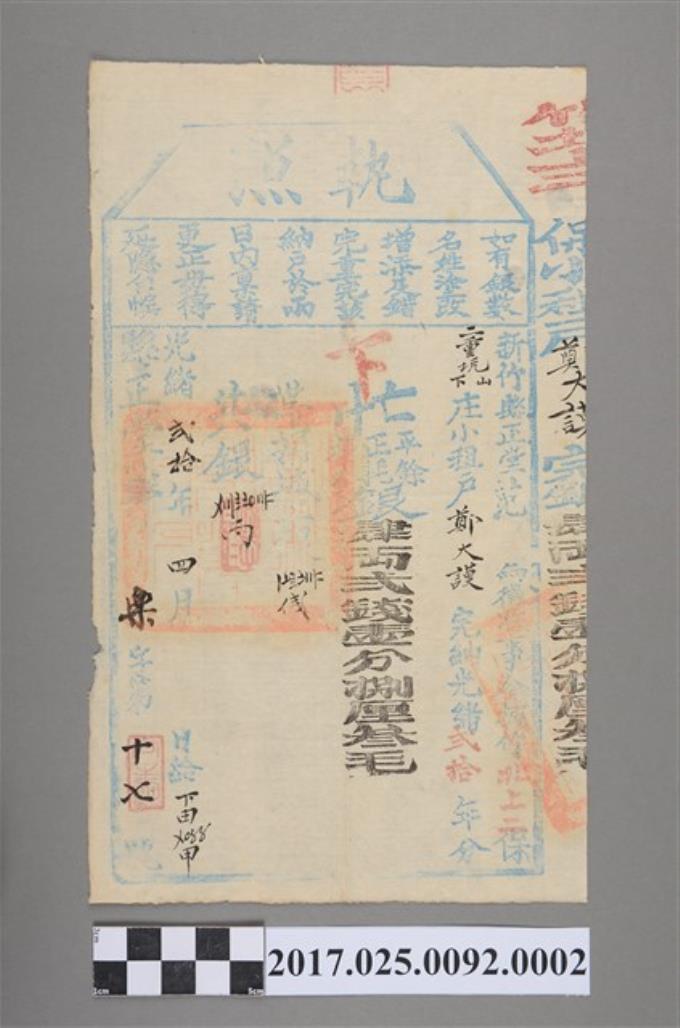 光緒年間新竹縣正堂發給鄭大謨執照(上忙)