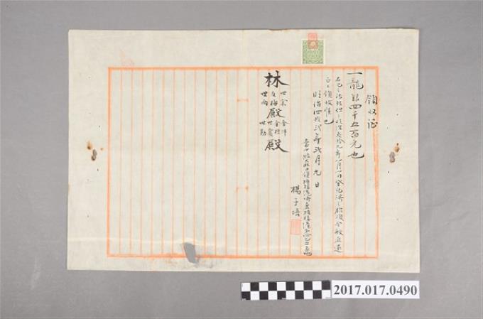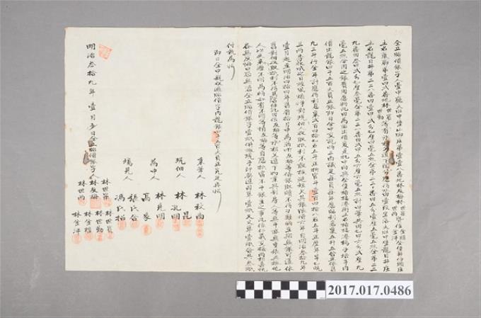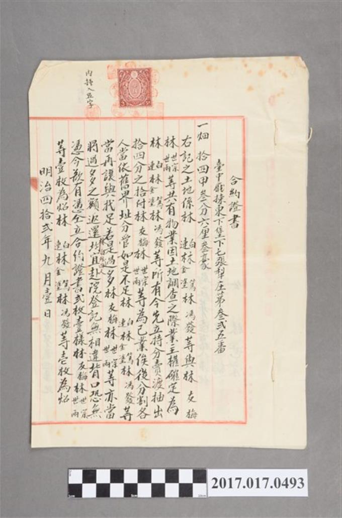 明治39年林友梅等人立胎借銀字