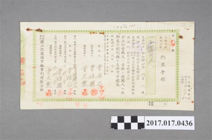 橫山信用購買販賣利用組合約束手形