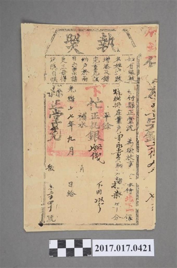 光緒17年竹北一堡曾永貴完稅執照